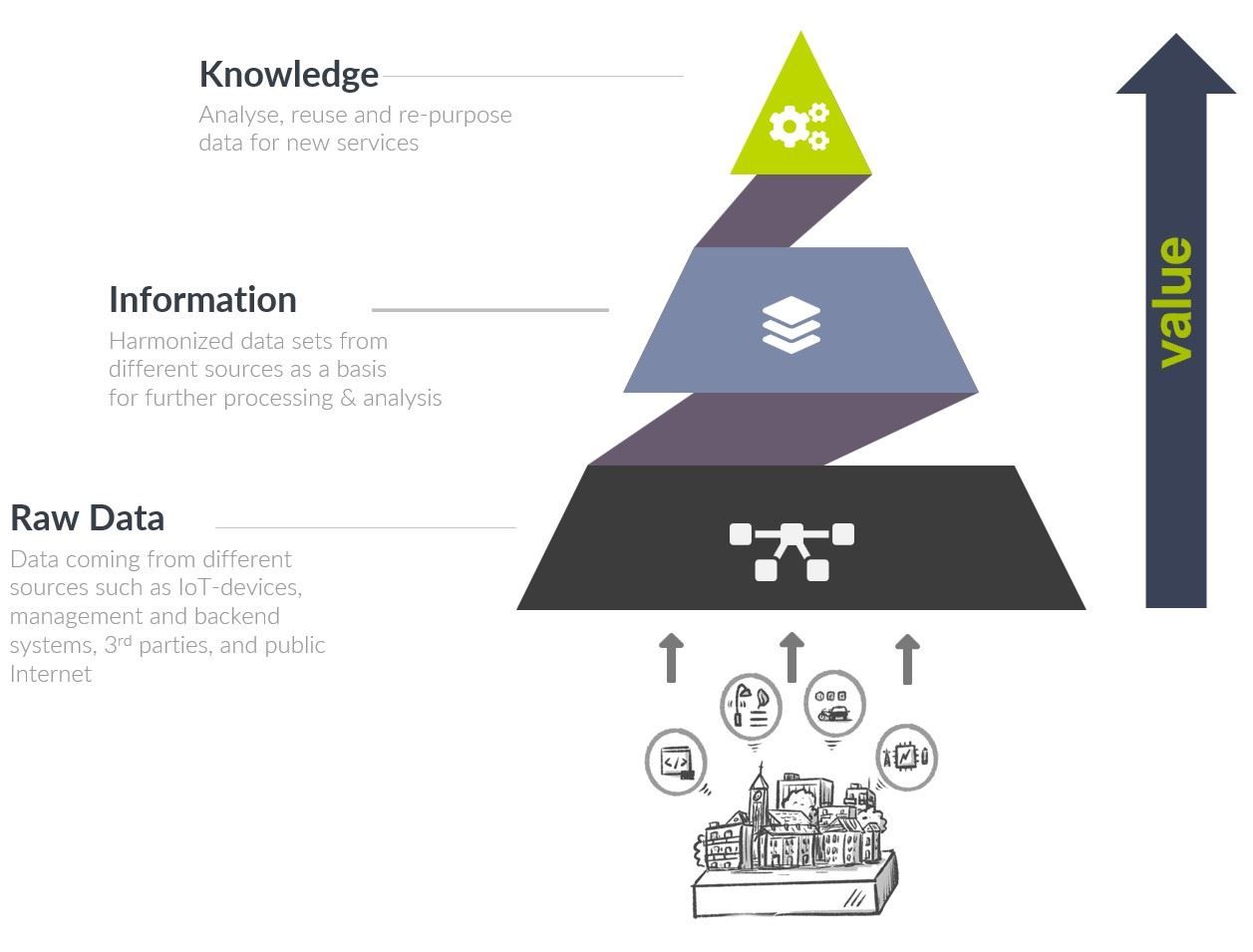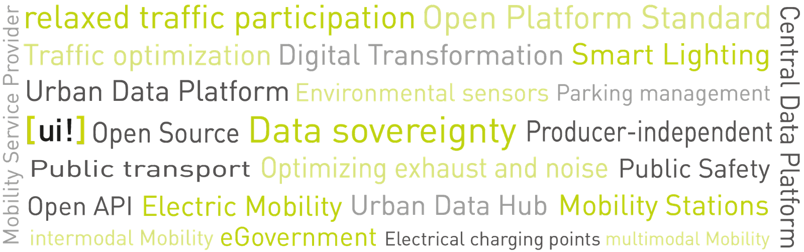 Based on [ui!] UrbanInsight, sensor and other real-time data are collected from different data sources and are processed, analysed and visualised as the "pulse of the city" in all relevant areas as data-based benefit services.